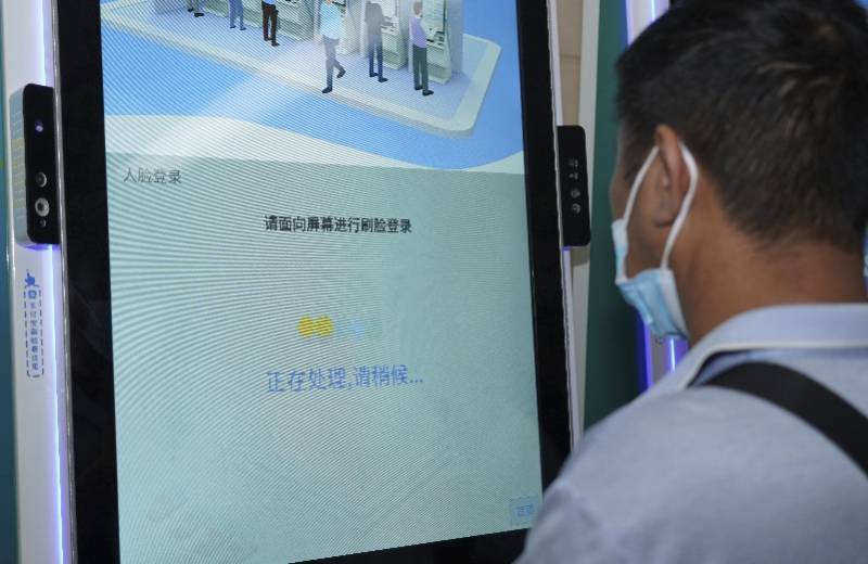 市民在昆明一家医院银医通自助设备上进行人脸识别。新华社资料图